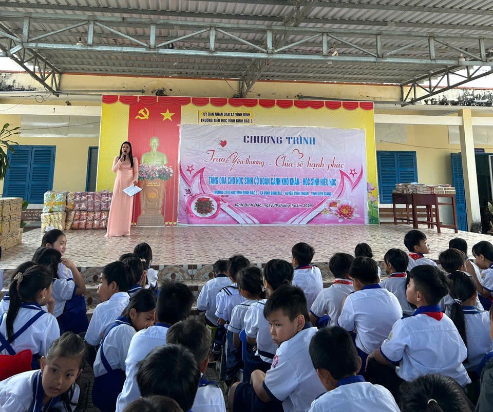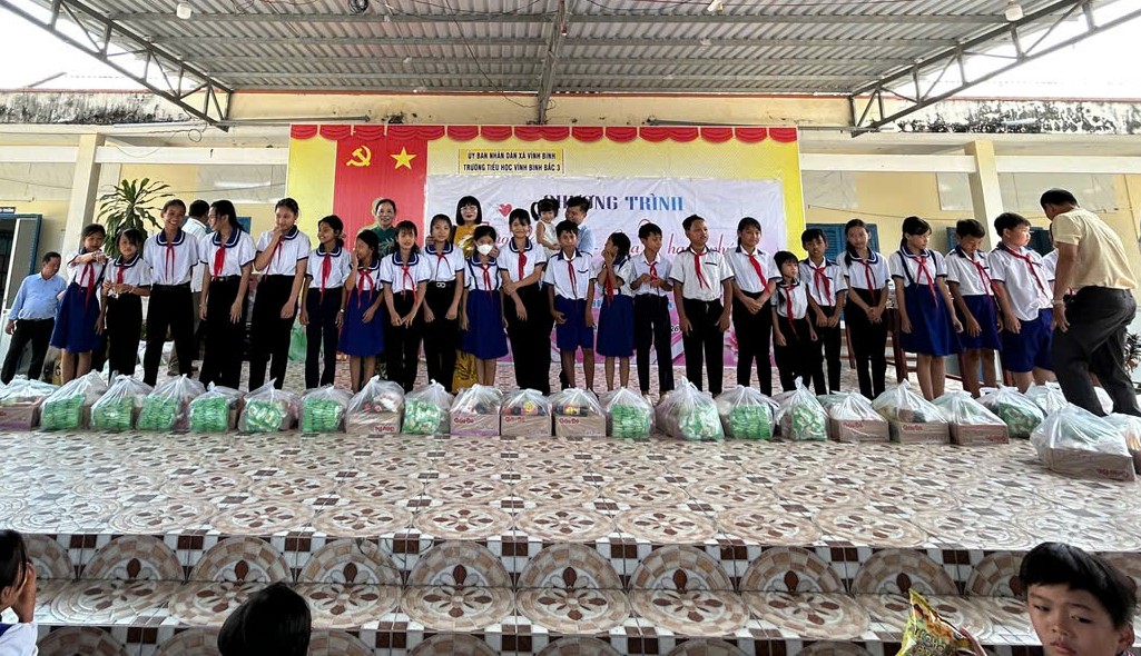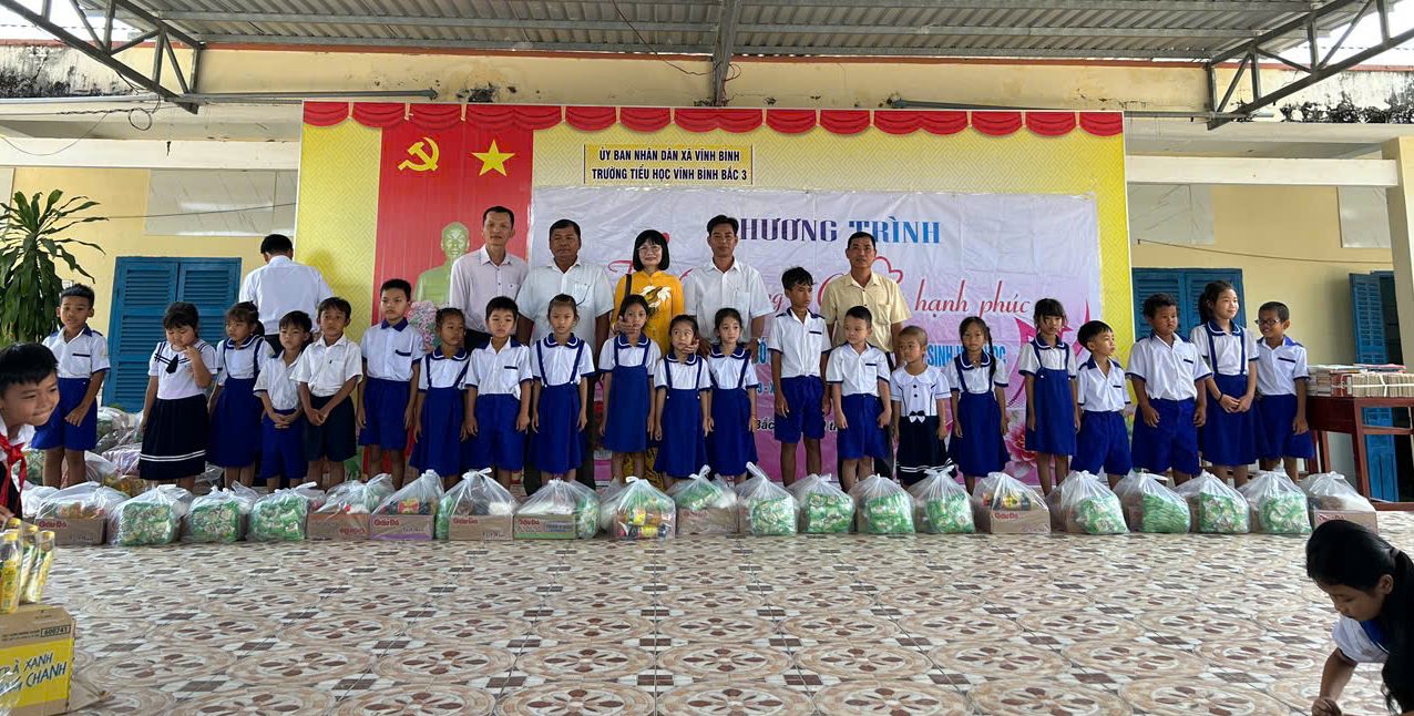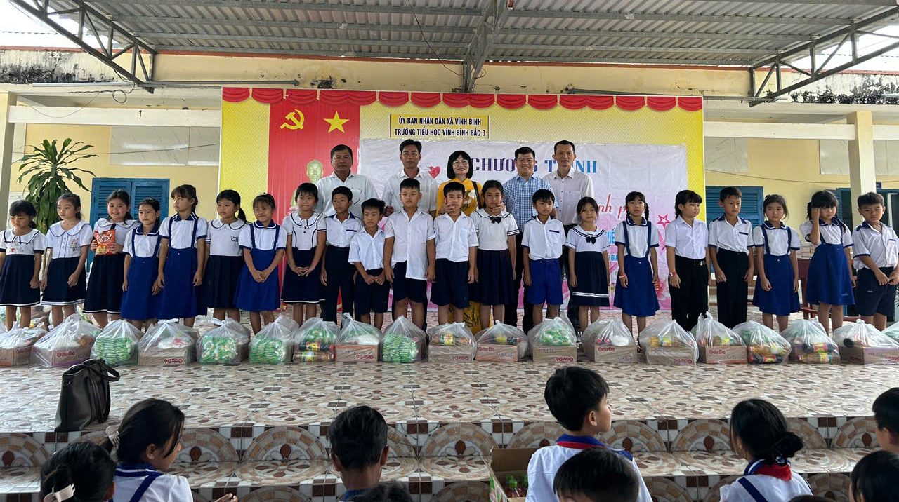 Hôm nay ngày 30/01/2026, trong không khí vui tươi, chuẩn bị mừng xuân mới Bính Ngọ 2026, nhà trường chúng ta lại được Gia đình cô: Lê Thị Hà, Nguyên là giáo viên, trường Tiểu học Vĩnh Bình Bắc 3. Địa chỉ: Phường Tân Tạo, Quận Bình Tân-Thành phố Hồ Chí Minh trao tặng quà, bánh, sách, truyện thiếu nhi cho học sinh của trường và 110 xuất quà cho học sinh có hoàn cảnh khó khăn vượt khó vươn lên học giỏi và tặng 10 xuất quà cho gia đình chính sách, gia đình neo đơn. Trị giá tương đương 40 triệu đồng. Đó cũng là lí do của buổi trao quà ngày hôm nay!